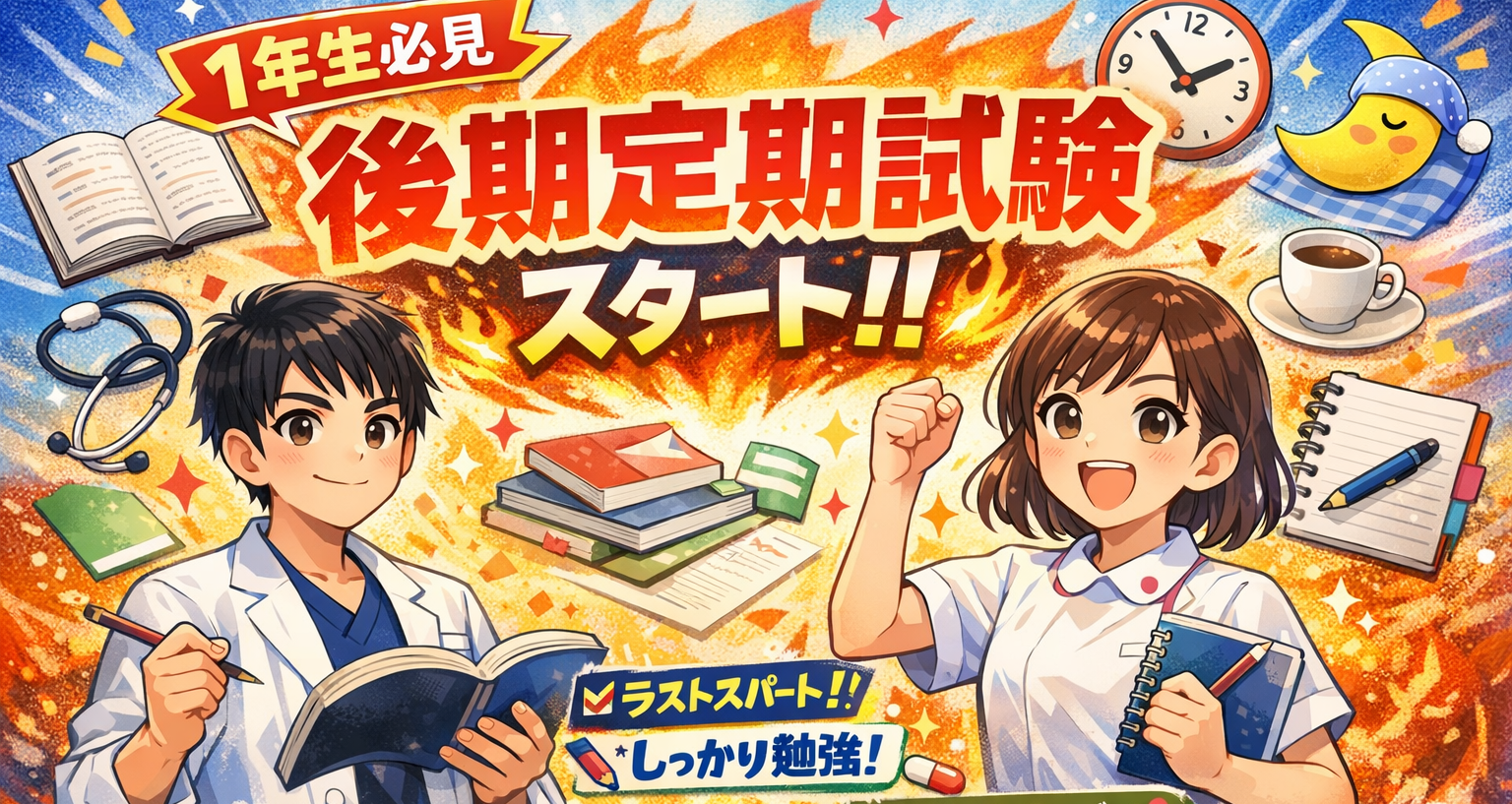 ついに 1年生の後期定期試験 が始まりました‼️📖✏️入学してから約1年、ここまで本当によく頑張ってきました👏✨ 最初は😵💫 専門用語が全然分からない🤯 ノートの取り方が分からない😰 勉強時間の作り方が難しい…そんな状態だった人も多かったはずです。 でも今はどうでしょう❓📌 教科書を読めば、意味が少しずつ分かる📌 授 …