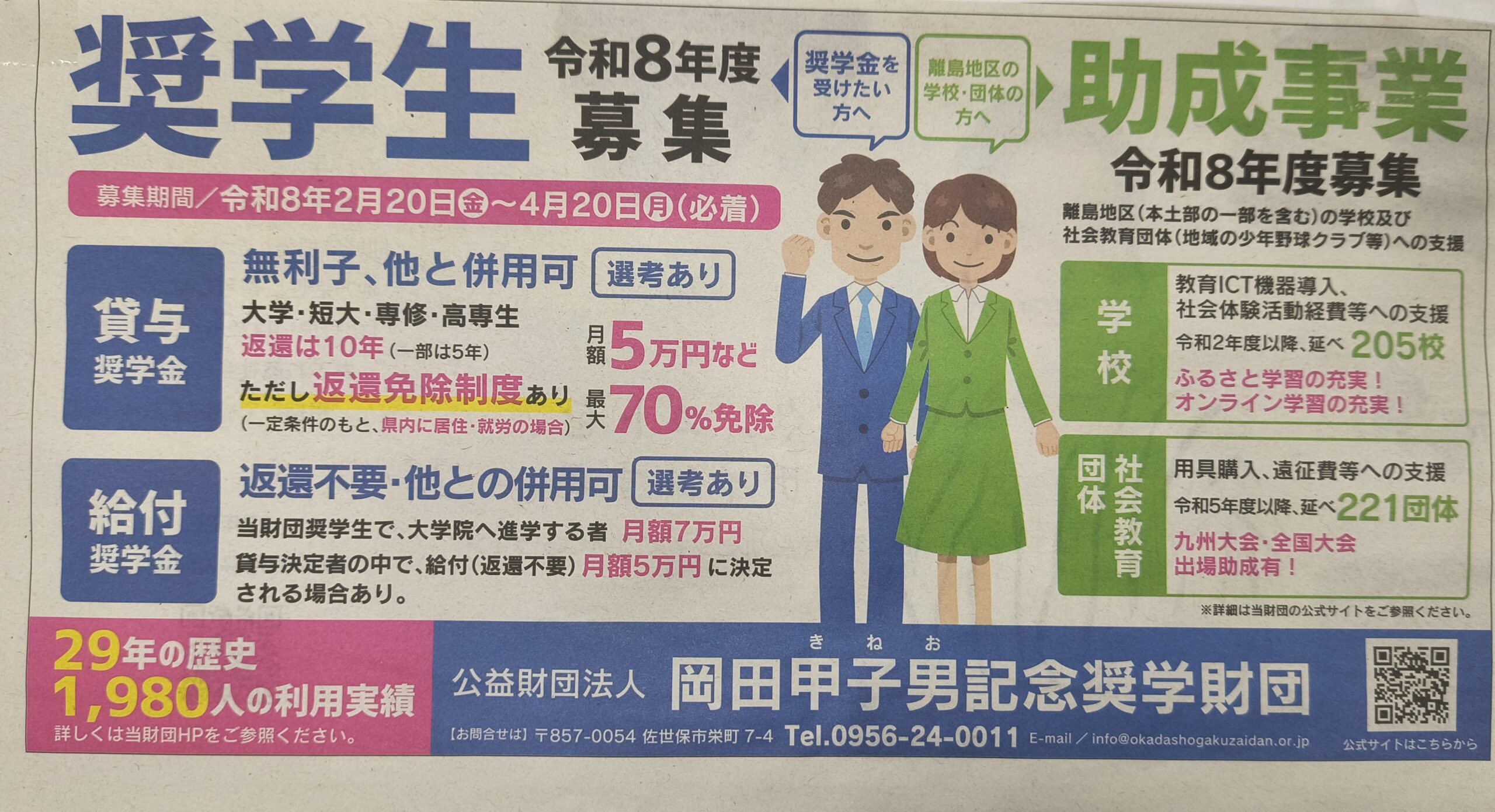 R8年度公益財団法人岡田甲子男記念奨学財団 奨学金のご案内