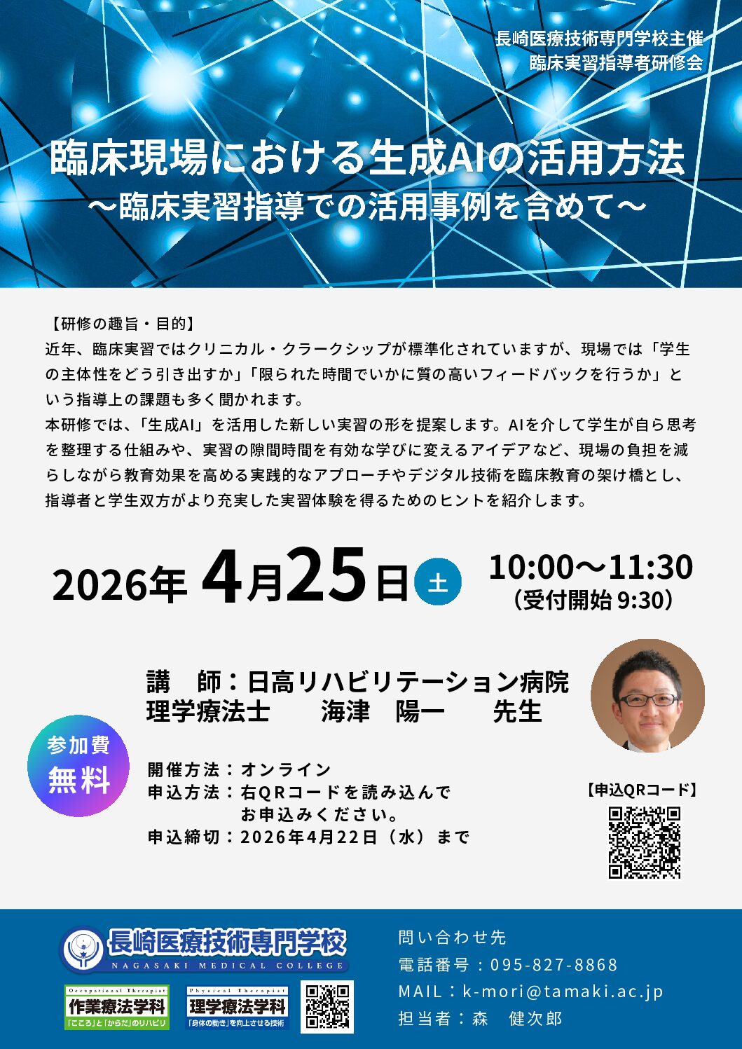 3月23日に令和7年度(第61回)理学療法士・作業療法士の国家試験結果が発表されました。 長崎医療技術専門学校(新卒)の結果は 理学療法学科は96.9%(全国平均94.9%) 作業療法学科は100%(全国平均96.6%) と素晴らしい結果でした。 これもひとえに学生と教員が一丸となって国家試 …