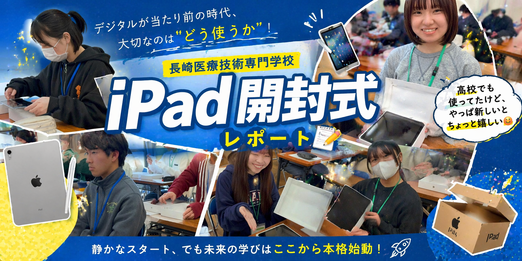 本日、長崎医療技術専門学校では✨iPad開封式✨を実施しました📦 教室に並ぶiPadの数々。ひと昔前なら、それだけでテンションが上がる光景ですが—— 😌反応は意外と落ち着き気味 いざ開封の瞬間。 「おぉー!!✨」というよりは… 😌「あ、iPadね」😎「高校でも使ってました」👍「普通に使えます」 そんな声がちらほら。 そ …