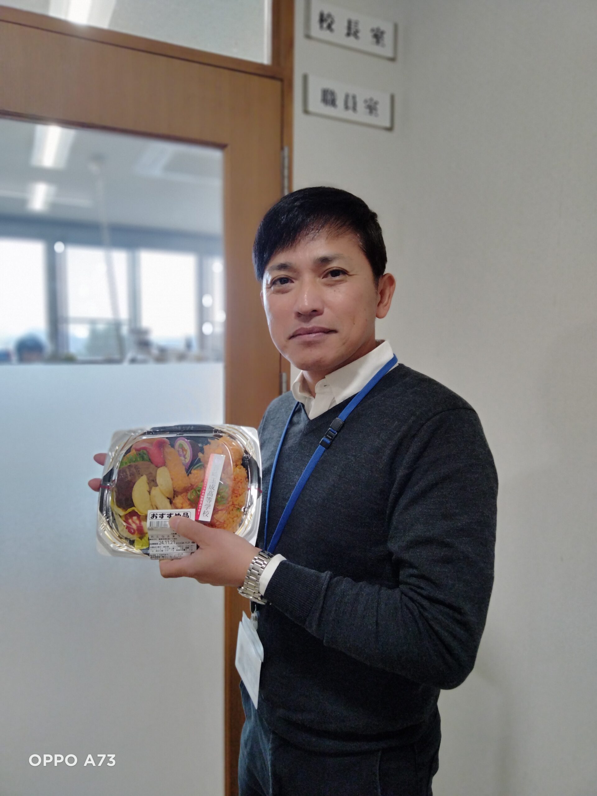 長崎玉成高校調理科とララコープとの共同開発”大人様弁当” HOME>BLOG>長崎玉成高校調理科とララコープとの共同開発”大人様弁当” 韋副校長が、長崎玉成高校調理科とララコープとの共同開発したお弁当の第2弾 ”大人様弁当”を購入!! 「撮って、撮って」とおねだりされたので、職員室の前で撮影しました!(笑) 長崎医療技術専門学校には、ララコープさんが、毎日お弁当などを販売に来られます。 とても便利です! ララコープさんと長崎玉成高校調理科は過去にも、秋の行楽弁当などを共同開発するなど 深い関係です。 医技専は長崎玉成高校は系列校ですので、調理科の皆さんの頑張りを、食べて応援していきます!! カテゴリー 理学療法学科(2) 作業療法学科(3) その他(104)