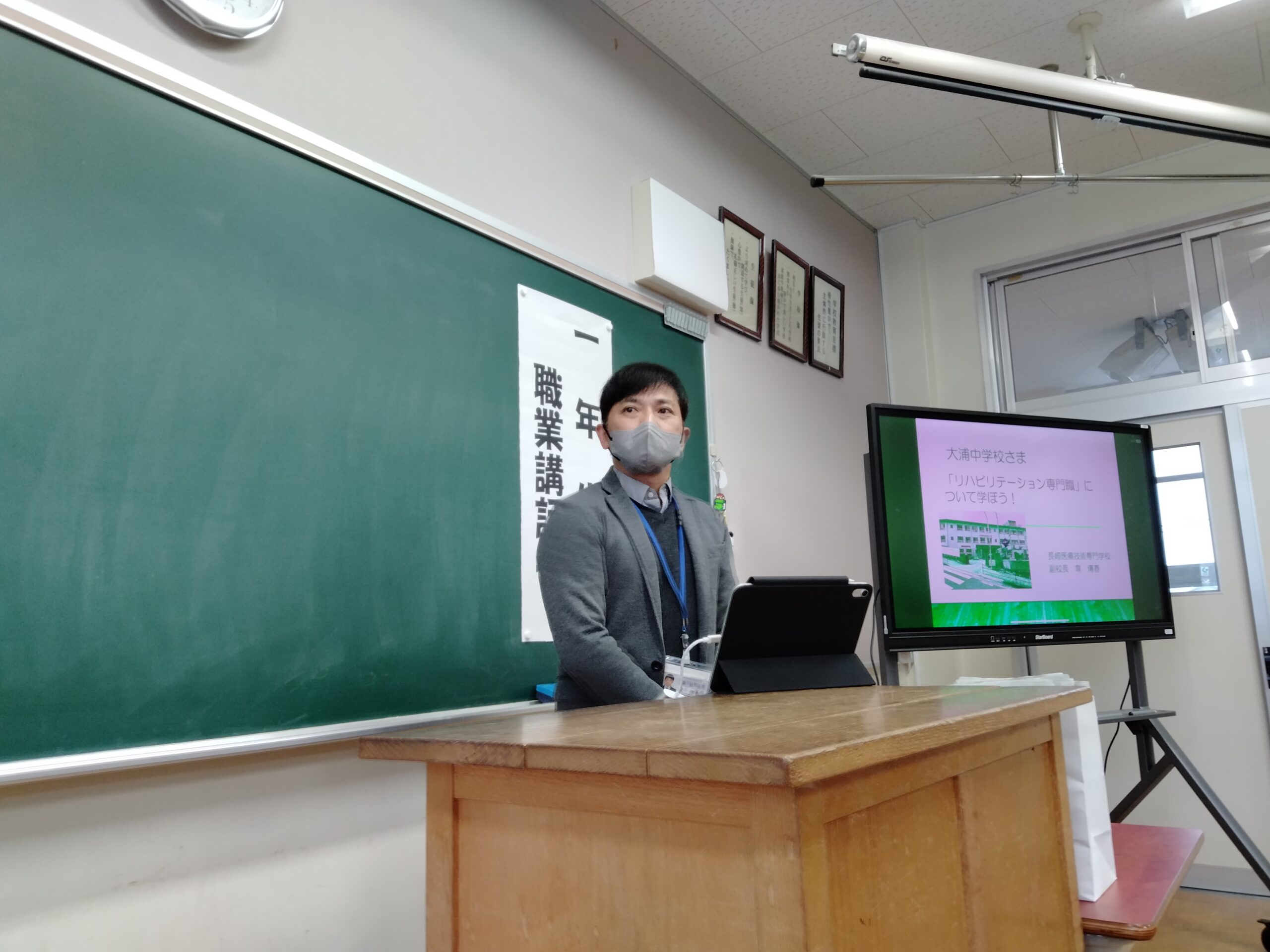 写真は、大浦中学校を訪問した際の写真です。