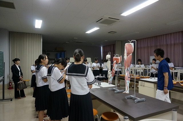 島原商業高校来校 HOME>NEWS>島原商業高校来校 7月9日に島原商業高校家政科の学生と引率の先生42名が本校の見学のため来校しました。 1時間半ほどの見学でしたが、駆け足で校内の見学と各職種の説明をおこないました。 家政科ということもあり、作業療法士や歯科衛生士の方に興味が湧きそうということで、理学療法学科の教員は負けじと魅力を伝えていました(私) 島商の先輩も本校にいます。今後の進路の参考になれば幸いです。 カテゴリー お知らせ(511) 重要(2) オープンキャンパス(113) その他(0) クラブ活動(1) 医技専クイズ(8) 卒業生(2) 学校の様子(100) 就職(5) 授業風景(47) 教員(5) 行事(33)